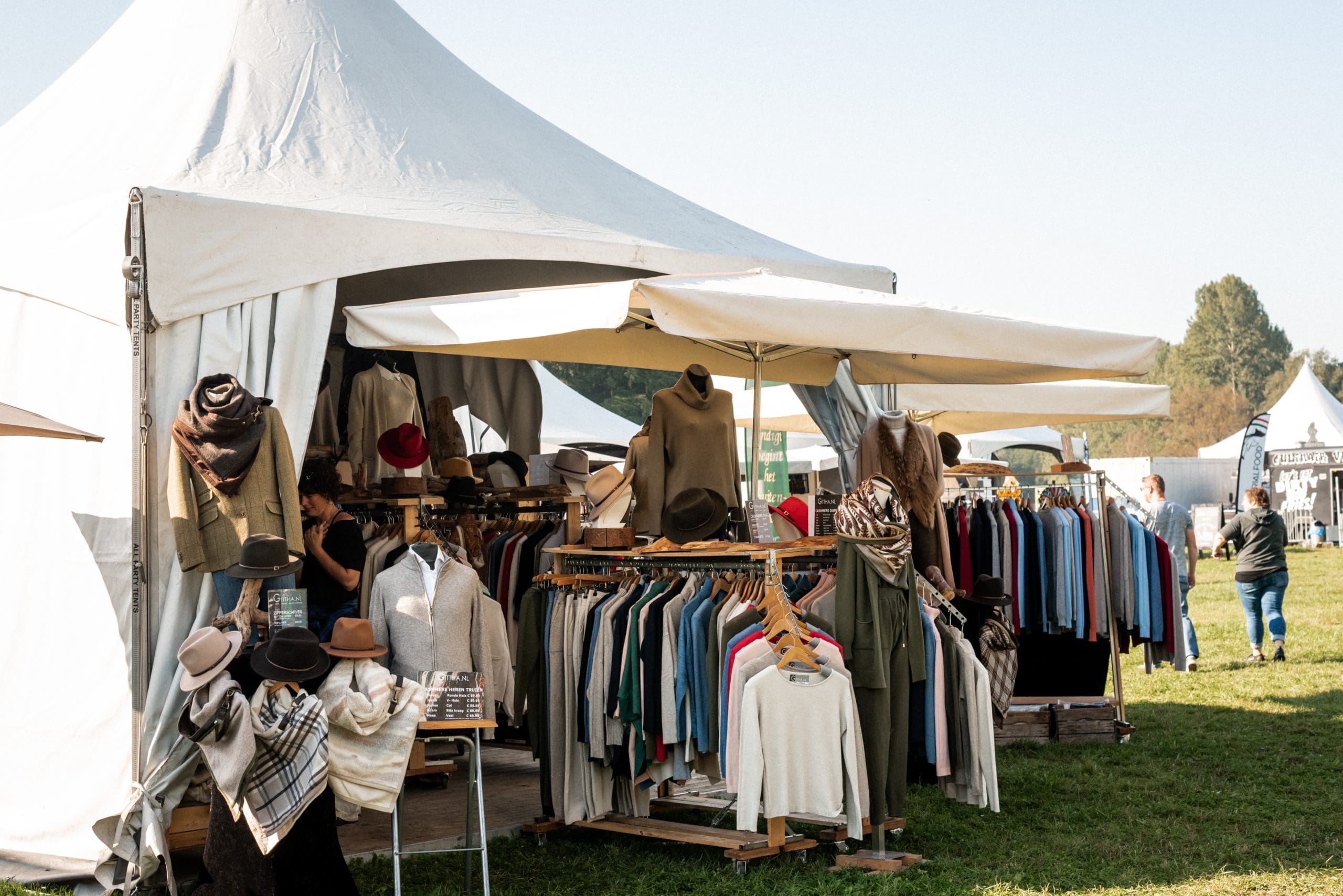 Cammel en De Wit ogen alsof ze zo van de prairie in Montana naar Liempde zijn overgekomen. Met een huifkar. De fraaie wagen, eigendom van Cammel, trekt bekijks, al is die tussen de stands met outdoorkleding, verrekijkers en hondenkluiven een vreemde eend in de bijt. ,,Ik heb hem nog niet zo heel lang”, vertelt de ondernemer. ,,Hij is te huur voor evenementen.” Een paard ontbreekt. ,,Ik rijd er niet mee op de openbare weg. Ja, op een trailer.”
